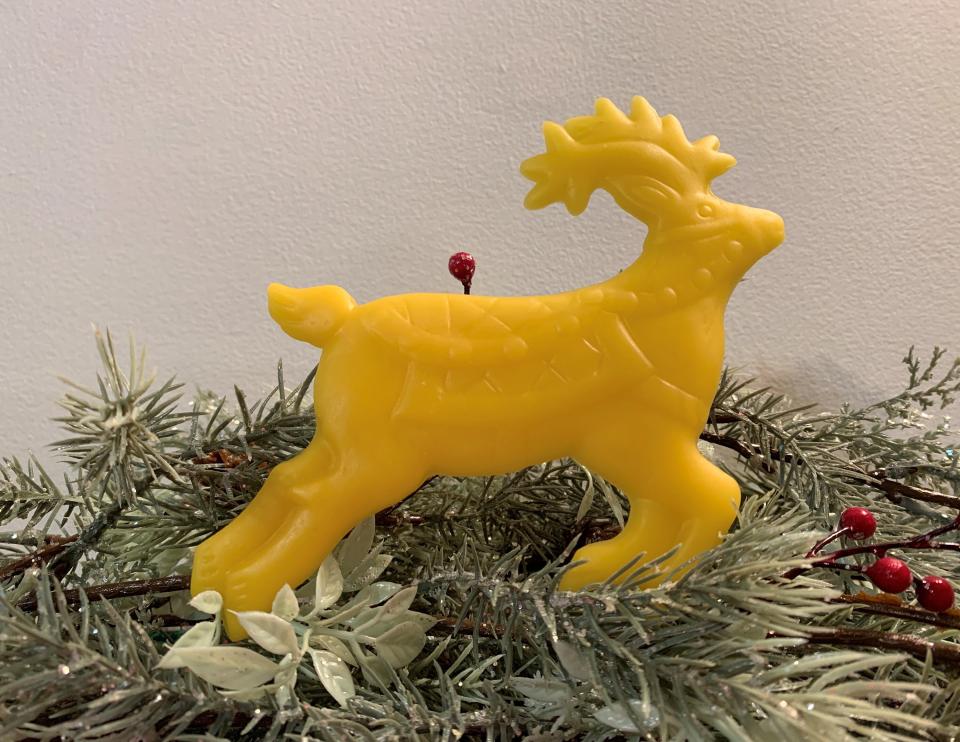 This is a sweet 100% pure beeswax reindeer named Prancer that I hand pour in a vintage mold from 1992.